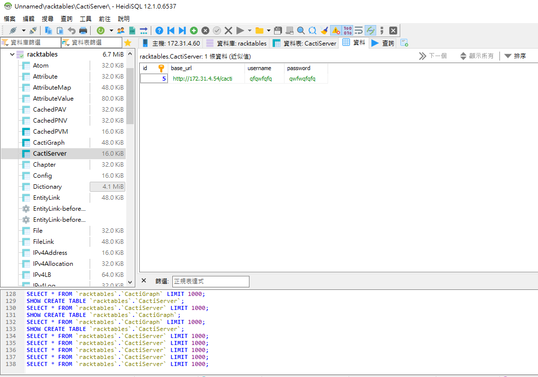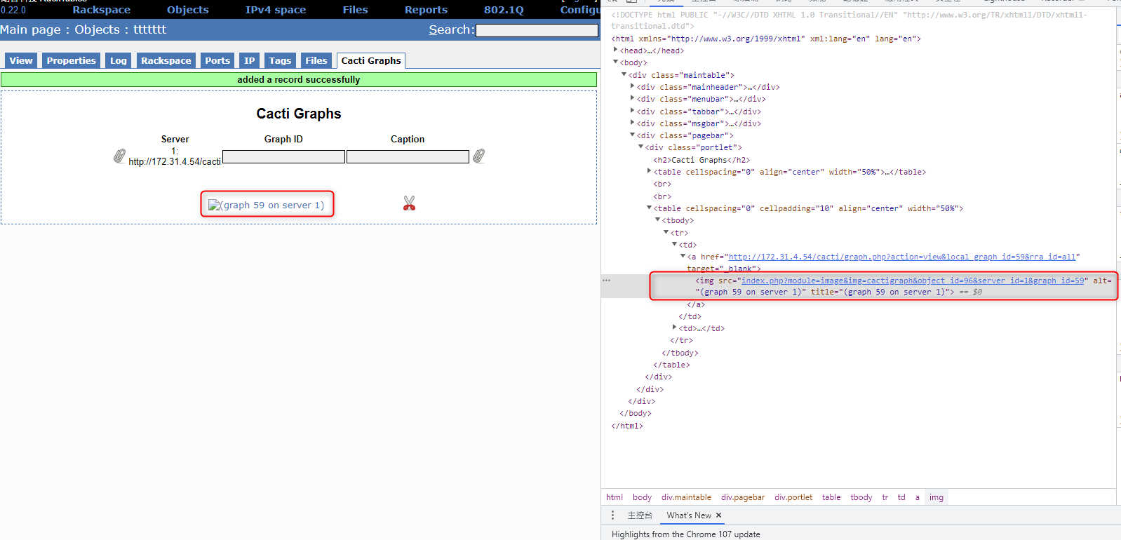 Opening one of the corrupted images will open a new tab of chrome to cacti and display the graphics ID screen I specified, this action does not have any nginx log in racktables? In addition, I found that no matter whether the account password I entered in CACTI is correct or not, Open the damaged image, after all, it is the login page of CACTI, you must log in first, CACTI of racktables sets account information, does it not work? how do i fix it ? thank you |