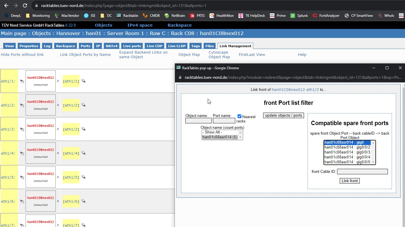 | Description | When I try to connect front port with back ports in the 'Link Management' section then I receive a error message "PDOException". Also when I try to connect front port and front port, then I receive the same error message. Otherwise when I connect the ports within the 'ports' section, then it is working, but I can only connect one to one instead when I use multipe patch panels. PDOException SQLSTATE[HY000]: General error: 1442 Can't update table 'port' in stored function/trigger because it is already used by statement which invoked this stored function/trigger (HY000) at file /var/www/racktables/wwwroot/inc/database.php, line 3940 /var/www/racktables/wwwroot/inc/database.php:3940 execute() /var/www/racktables/plugins/linkmgmt/plugin.php:4069 usePreparedInsertBlade() /var/www/racktables/plugins/linkmgmt/plugin.php:3990 linkmgmt_linkPorts() /var/www/racktables/wwwroot/inc/functions.php:5679 linkmgmt_oplinkPort() /var/www/racktables/plugins/linkmgmt/plugin.php:4098 getOutputOf() /var/www/racktables/wwwroot/inc/functions.php:6032 linkmgmt_opPortLinkDialog() /var/www/racktables/wwwroot/index.php:238 universalOpHandler() Error info: Array ( [0] => HY000 [1] => 1442 [2] => Can't update table 'port' in stored function/trigger because it is already used by statement which invoked this stored function/trigger ) Parameters: GET (array) module redirect page object tab linkmgmt object_id 131 allports 1 op PortLinkDialog port 1831 linktype front POST (array) port 1831 filter-obj filter-port in_rack 1 remote_object 461 remote_ports (array) 0 7174 cable do_link Link front COOKIE (array) __cmpcpcu7702 __51__ __cmpconsent7702 BP0LbLkP0LbLkAfSABDEABAAAAAAAA __cmpcvcu7702 __s23_s2612_s1409_s24_s1475_s893_c43145_c2838_c2837_U__ PHPSESSID 67m3rkvea2vi8or7h0qtn5c8ls | ||||
